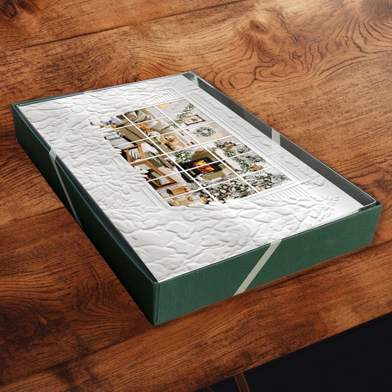 This set of 16 holiday cards features embossed detailing and a heartfelt inside greeting.