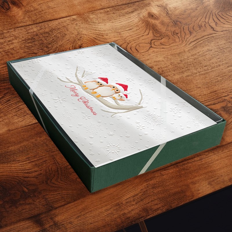 This set of 16 holiday cards features embossed detailing and a heartfelt inside greeting.