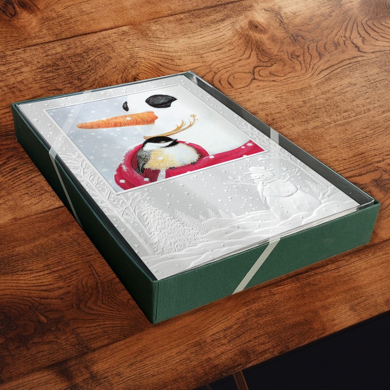This set of 16 holiday cards features embossed detailing and a heartfelt inside greeting.