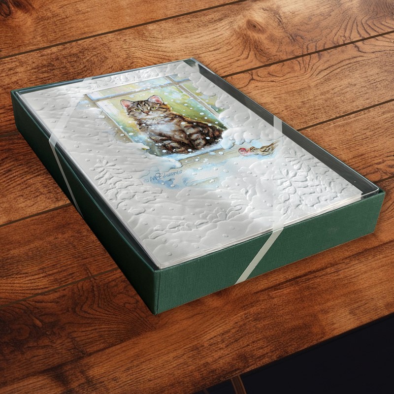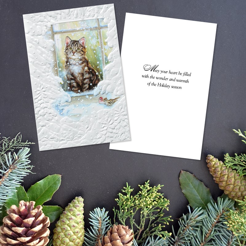 Our Deluxe Cards measure a generous 8-1/4"x 5-3/8", but require no additional postage to send. Cards are printed on uncoated, textured cardstock, using our signature production process for rich, brilliant colors. Our detailed, sculptured embossing gives our products a luxurious feel and quality, for a card to delight both giver and recipient. All Pumpernickel Press cards and envelopes are always produced, printed, and packed in the USA, using eco-friendly recycled paper and agricultural-based inks.