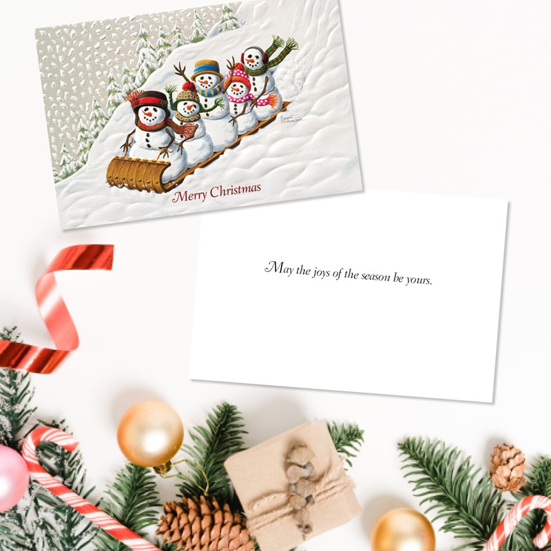 This set of 16 holiday cards features embossed detailing and a heartfelt inside greeting.