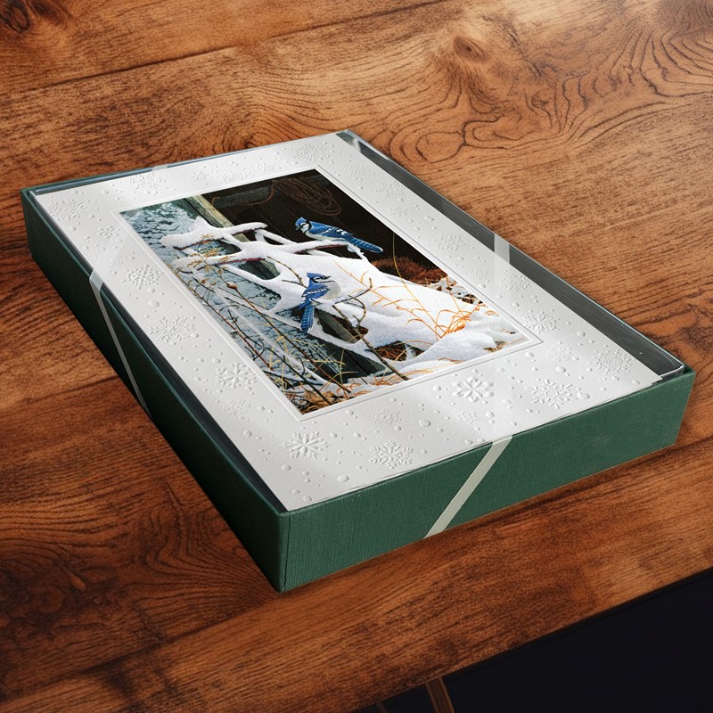This set of 16 holiday cards features embossed detailing and a heartfelt inside greeting.