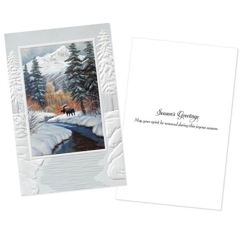 Mark Keathley's remarkable paintings bring the wonders of winter to life in this spellbinding Christmas card collection. This assortment contains 4 card designs, each embellished with our high-quality multilevel embossing and featuring a heartfelt holiday greeting. Each card also includes fun facts and educational information about featured animals and locations printed on the reverse.