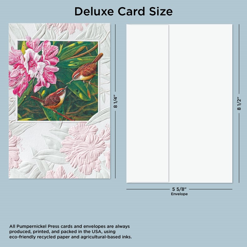 • Deluxe Cards measure a generous 8-1/4”x 5-3/8”, but require no additional postage to send.