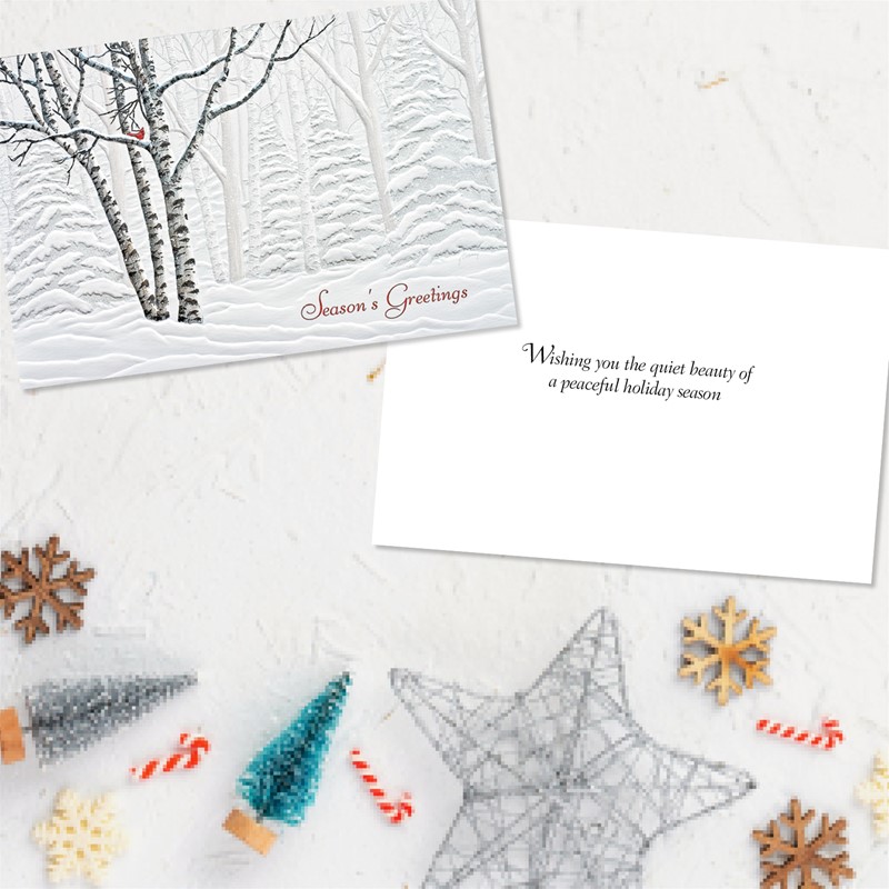 Inside greeting: Wishing you the quiet beauty of a peaceful holiday season