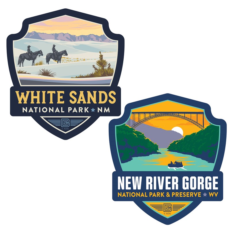 All 63 of our beloved National Parks are showcased on these unique emblem stickers, featuring the vintage artwork of Anderson Design Group.