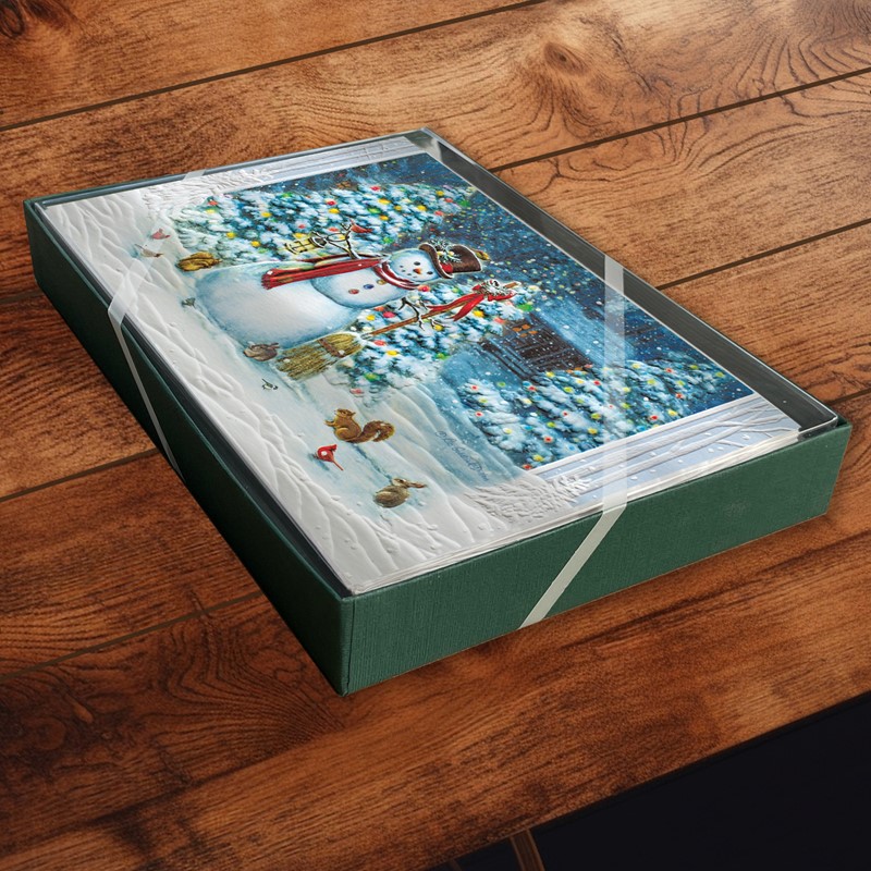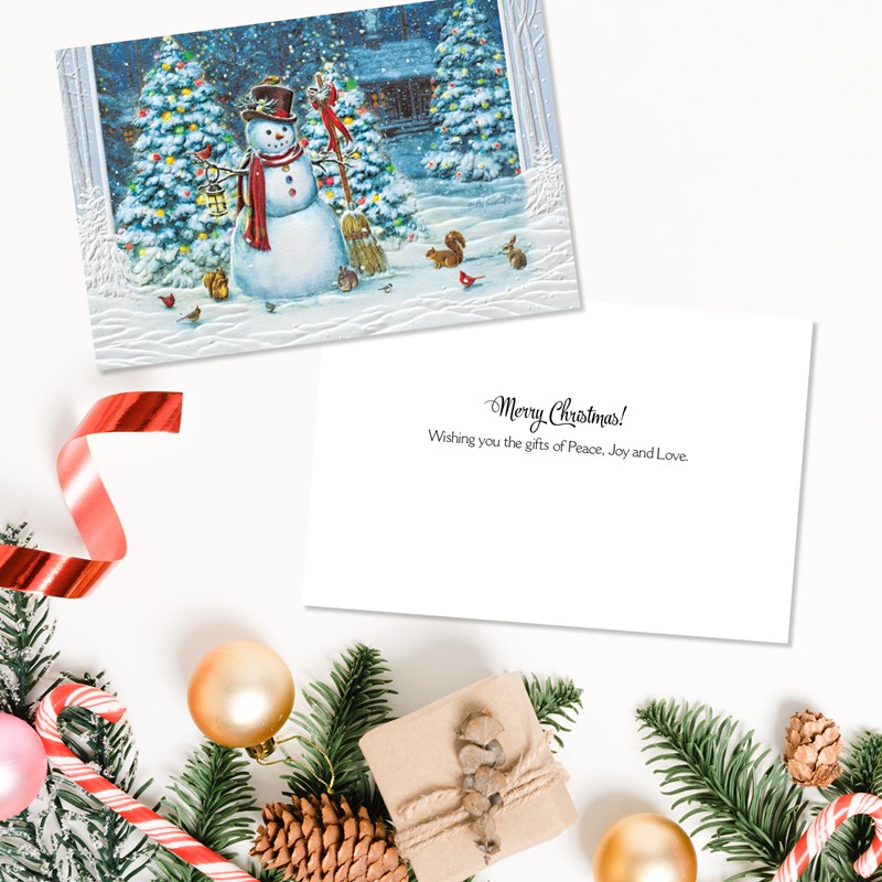 This set of 16 holiday cards features embossed detailing and a heartfelt inside greeting.