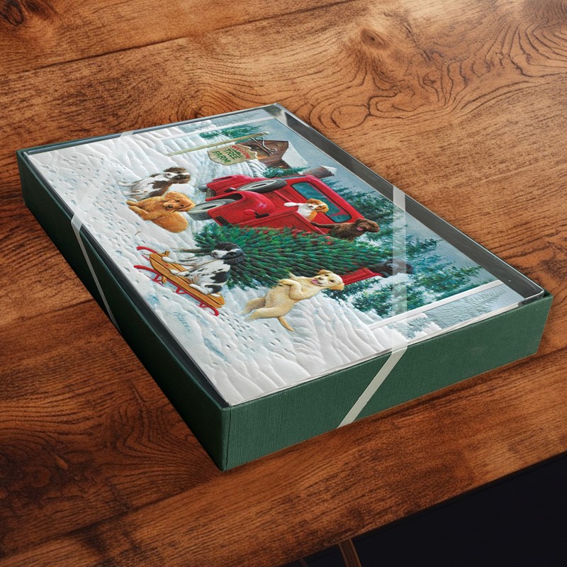 Pick-Up Puppies | Cat lover boxed Christmas cards