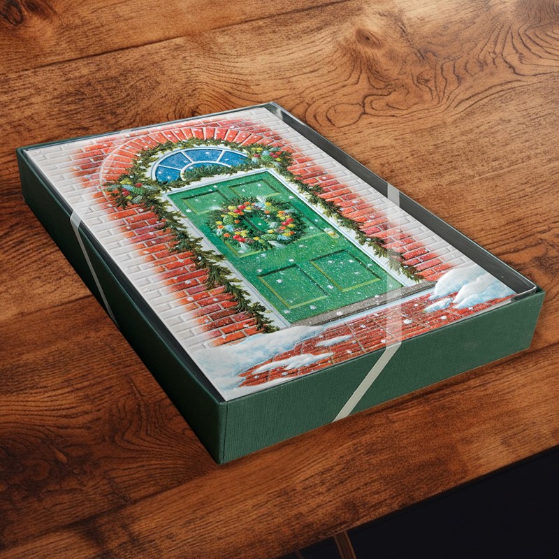 This set of 16 holiday cards features embossed detailing and a heartfelt inside greeting.