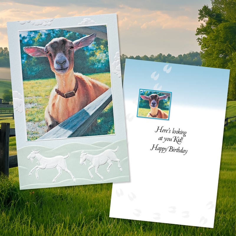 • Deluxe Cards measure a generous 8-1/4"x 5-3/8", but require no additional postage to send. • Size-matching envelopes included. • Artwork featured on these cards is embellished with our high-quality multilevel embossing. • Each card also includes fun facts and educational information printed on the reverse. • Pumpernickel Press cards and envelopes are produced, printed, and packed in the USA, using eco-friendly recycled paper and agricultural-based inks.