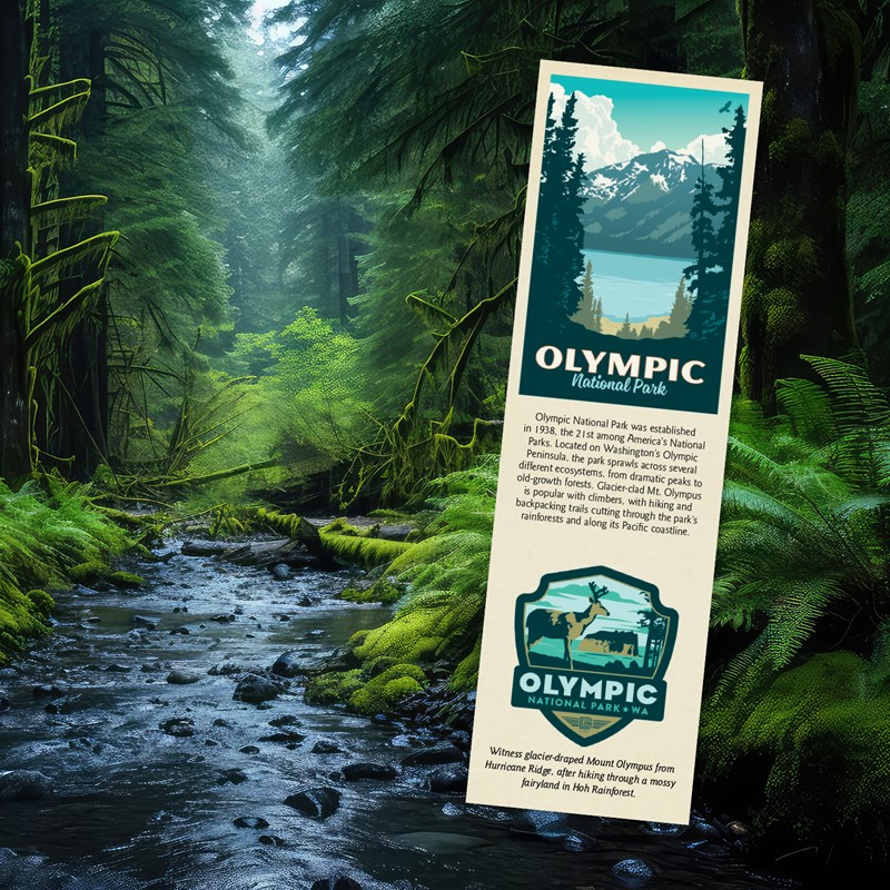Enjoy and learn about the wildlife roaming scenic Olympic NP, with our detailed, vibrant bookmarks.