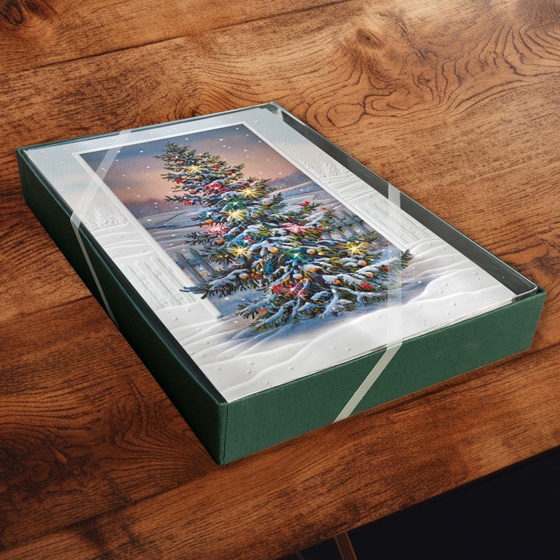 Sparkling Tree | Embossed boxed Christmas tree greeting cards