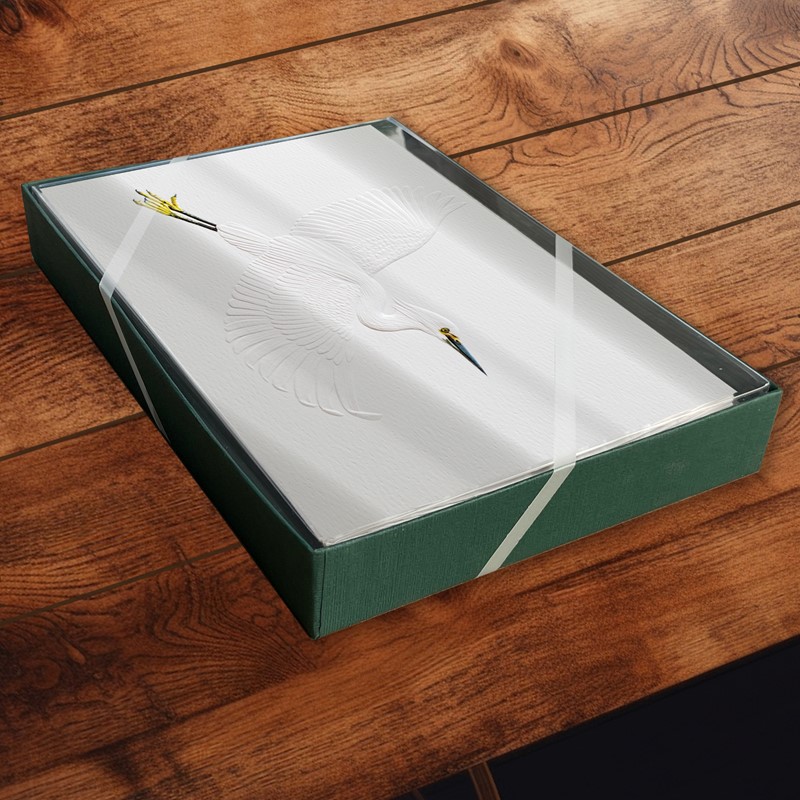 Our Deluxe Cards measure a generous 8-1/4"x 5-3/8", but require no additional postage to send. Cards are printed on uncoated, textured cardstock, using our signature production process for rich, brilliant colors. Our detailed, sculptured embossing gives our products a luxurious feel and quality, for a card to delight both giver and recipient. All Pumpernickel Press cards and envelopes are always produced, printed, and packed in the USA, using eco-friendly recycled paper and agricultural-based inks.