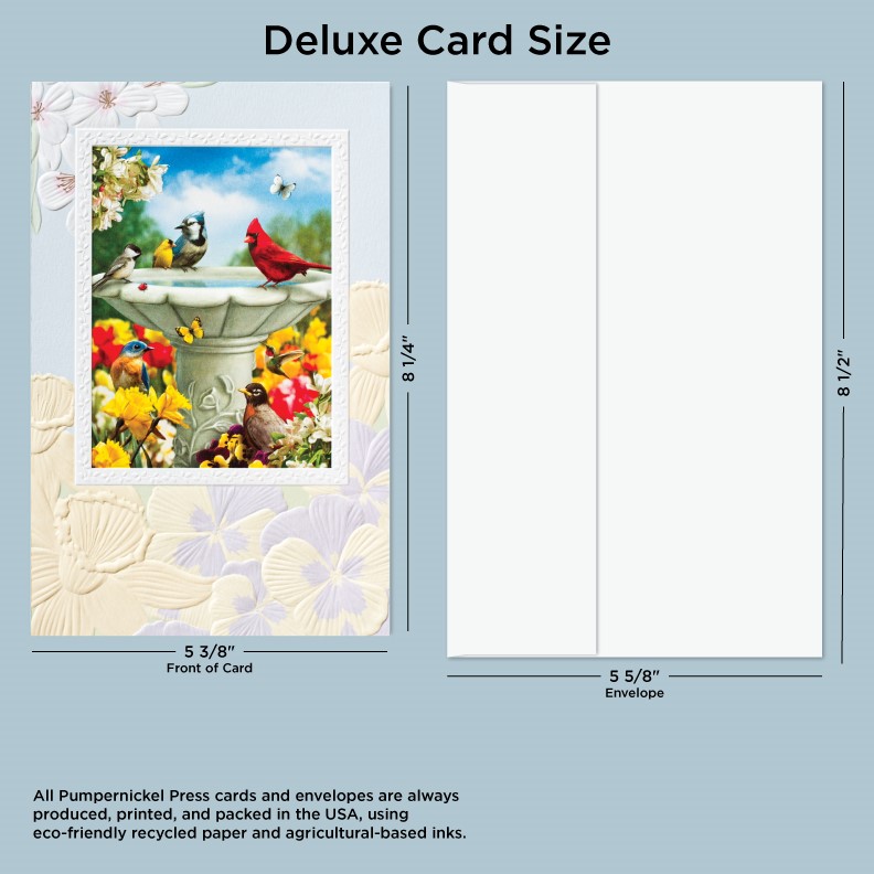 • Deluxe Cards measure a generous 8-1/4”x 5-3/8”, but require no additional postage to send.