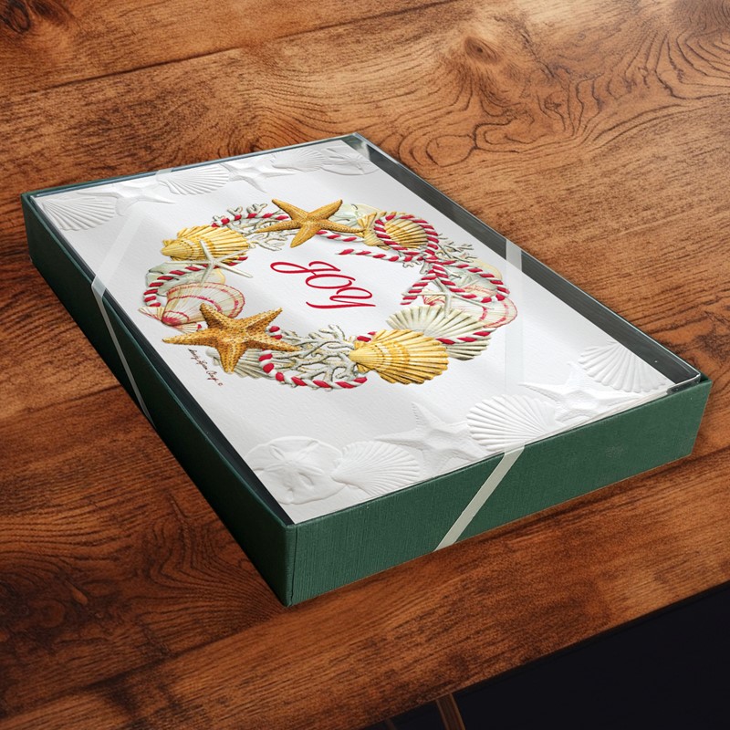 Joyful Seashell Wreath | Coastal themed Christmas cards